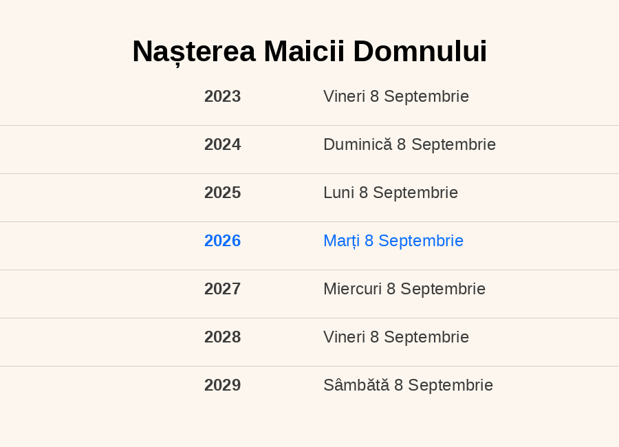 Câte zile mai sunt până la sărbătoarea Nașterii Maicii Domnului? 2026