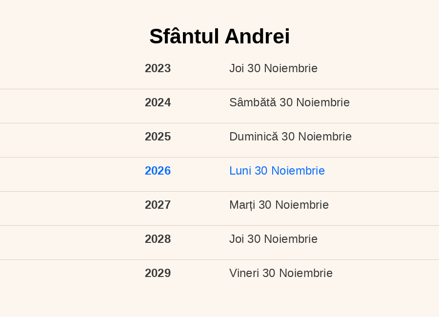 Câte zile mai sunt până la Sfântul Andrei 2026?